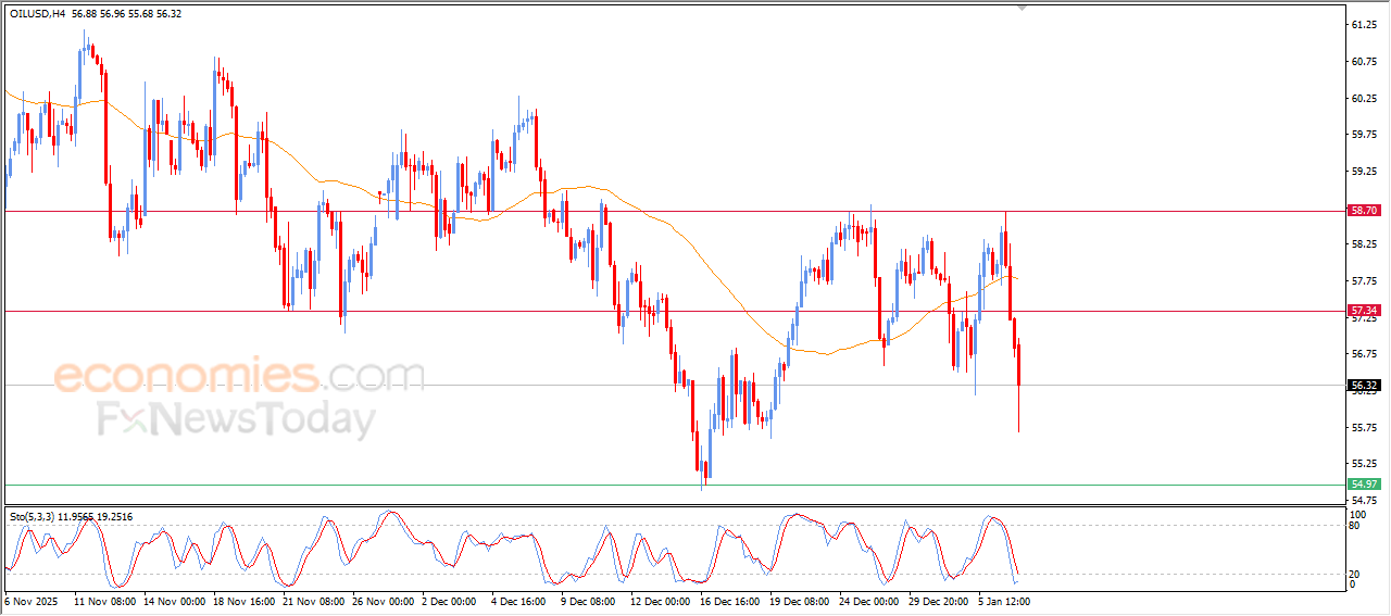 Råolje fortsatte sin kraftige nedgang i den siste intradagshandelen, påvirket av det fortsatte negative presset på grunn av handel under EMA50, noe som indikerer svakt momentum og setter klare begrensninger på eventuelle forsøk på bullish rebound for øyeblikket.
