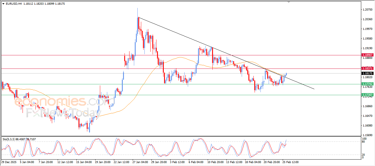 EURUSD-prisen bryter mot en bearish korrigerende trendlinje – Analyse 26-02-2026