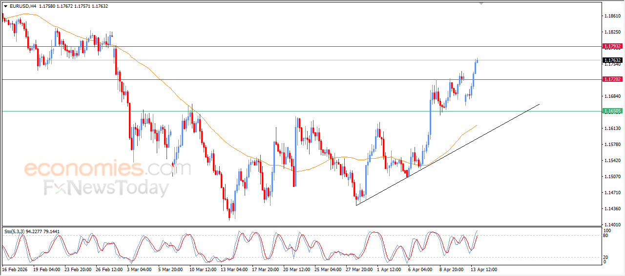 EURUSD-paret fortsatte sin sterke oppadgående bevegelse under sin siste intradagshandel, etter å ha brutt over det viktigste motstandsnivået på 1,1720. Dette utbruddet signaliserer tydelig økende bullish momentum, støttet av påfølgende positive signaler fra relative styrkeindikatorer, til tross for at det er i overkjøpt territorium, noe som gjenspeiler styrken i det nåværende momentumet.