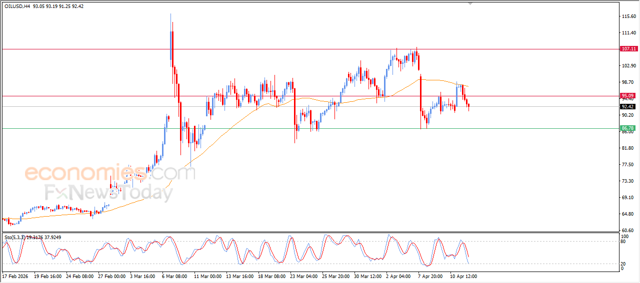 Råoljeprisene fortsatte å falle under den siste intradagshandelen etter å ikke ha overgått EMA50, som fungerte som en barriere som forhindret ytterligere oppadgående bevegelse og stoppet tidligere oppganger. Denne prisavvisningen presset handelen tilbake under det viktigste motstandsnivået på 95,00 dollar, noe som gjenspeiler svekkende bullish momentum.