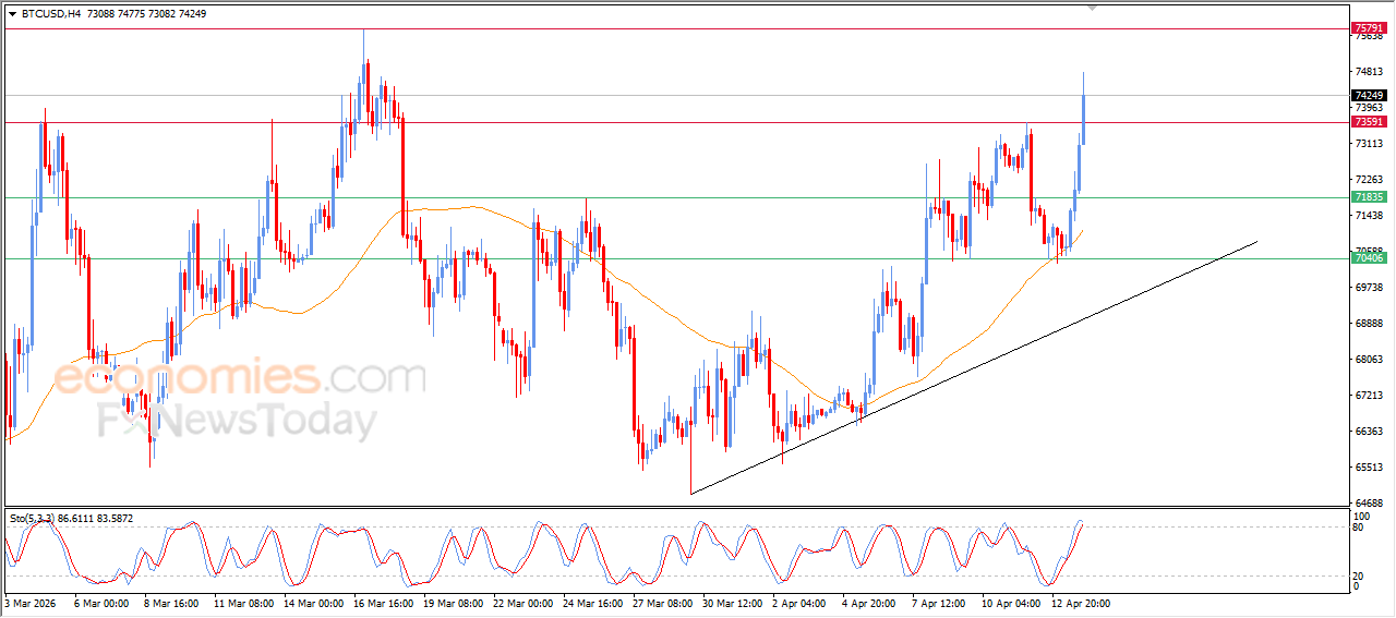 Bitcoin (BTCUSD) fortsatte sin sterke bullish rally under sin siste intradagshandel, og brøt det viktigste motstandsnivået på $73 500, som representerte kursmålet i tidligere analyse. Denne utviklingen kommer midt i en dominerende kortsiktig oppadgående trend, støttet av prishandel over EMA50, som gir dynamisk støtte og forsterker stabiliteten i den positive bevegelsen.