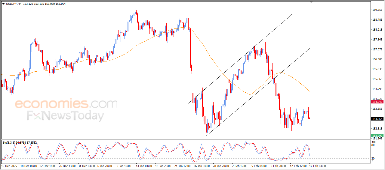 USDJPY falt i sin siste intradagshandel, med fremveksten av negative signaler fra indikatorene for relativ styrke, etter å ha nådd overkjøpte nivåer, samtidig som det negative og dynamiske presset som representeres av handelen under EMA50 fortsetter. Dette forsterker stabiliteten og dominansen til den viktigste bearish trenden på kort sikt, påvirket av utgangen fra den bullish korrigerende kanalens tidligere rekkevidde.