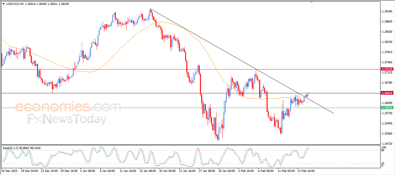 USDCAD-prisen steg i sin siste intradagshandel, og utnyttet den dynamiske støtten som representeres av handelen over EMA50. Den fikk bullish momentum som hjalp den med å bryte den viktigste bearish trendlinjen på kort sikt. Dette forsterker sjansene for å fortsette disse gevinstene i den kommende perioden. På den annen side ser vi fremveksten av negative overlappende signaler fra relative styrkeindikatorer, etter å ha nådd overkjøpte nivåer, noe som kan redusere de kommende gevinstene.
